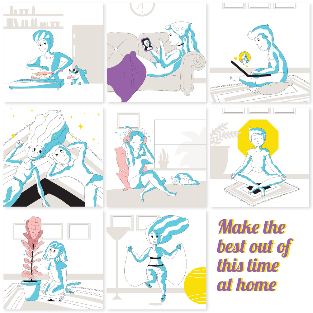 We have created illustrations due to 'Covid 19' to encourage people's positivity by enjoying time at home.